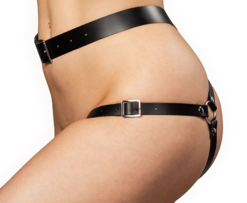 Hinweis: Dieser Hüftharness ist auch in einer Version aus weichem Spaltleder ohne Handfesseln erhältlich: 8247R.