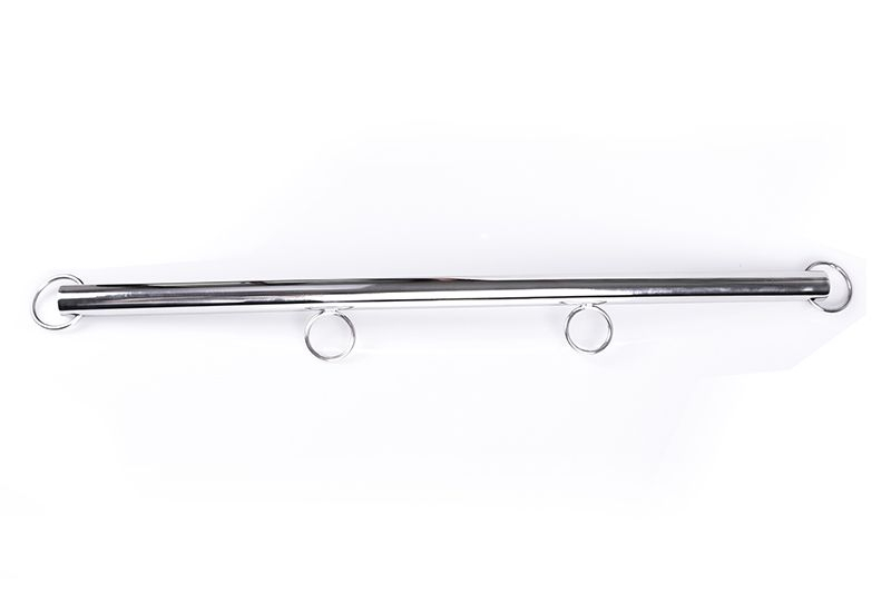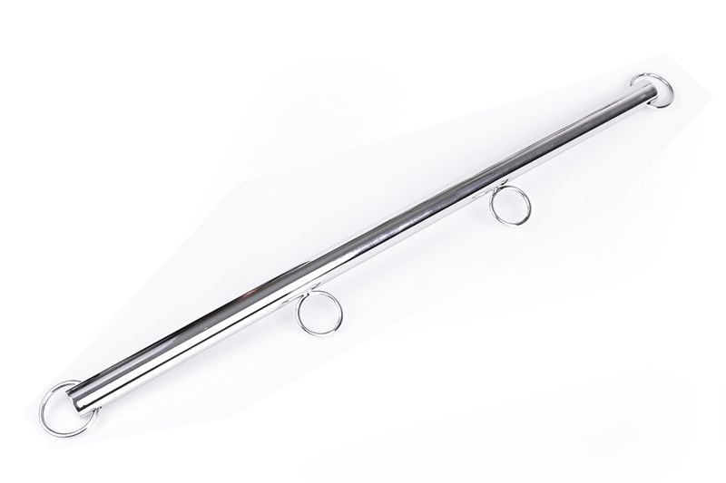 Spreader-bar with ringsstainless steel60cm by Shots Steel / Triune. This for arms and legs usable spreader bar has two fixed rings inside the bar and 2 moveable rings at the ends. The rings at this spreader-bar allow to attach clips, carbine hooks or other bondage equipment.