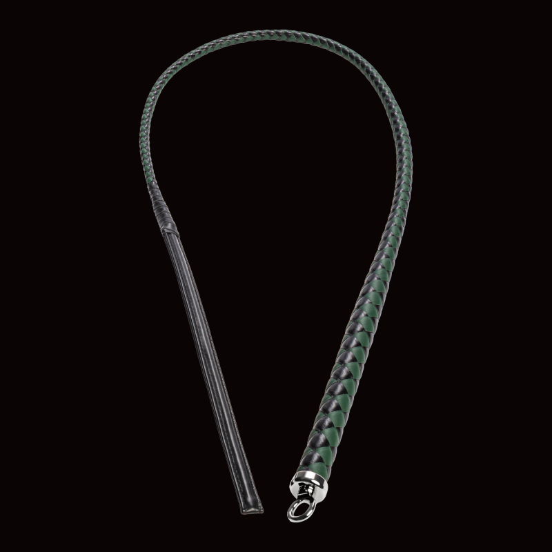 Premium Peitsche RISE "Feather slim" grün-schwarz - exquisite Handarbeit made in Japan! Die Feather-Serie ist die Lieblingspeitsche des Doms. Sie vereint intensives Schlagspiel mit Bühnenauftritten vor dem Publikum und ist auch das perfekte Schlaginstrument für Dominas und Herrinnen bei privaten BDSM-Sessions.