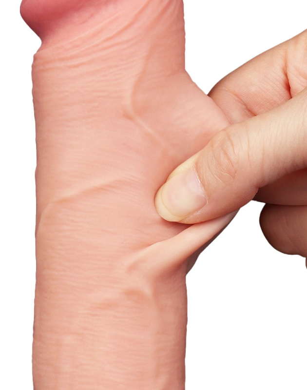 Dieser Sliding Skin Dual Layer Dong kommt mit realistischem, zweilagigem Gleithautmaterial für ein lebensechtes Gefühl, mit spezieller Dual-Density-Technologie. Um das Gefühl eines erigierten Penis zu simulieren, können Sie die weiche Aussenhaut und einen harten, jedoch flexiblen inneren Kern geniessen.