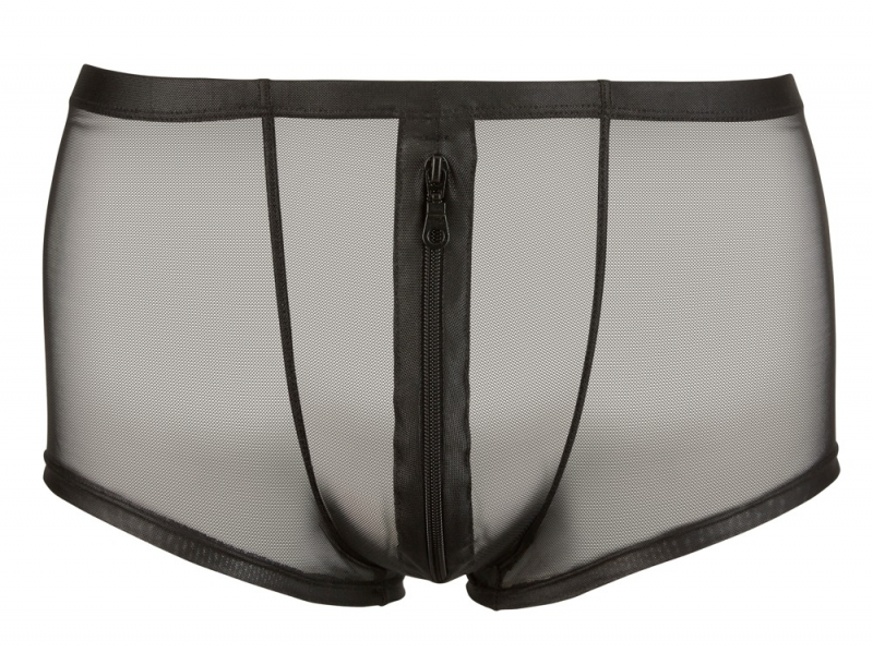 Netzshorts mit Glanz & Reissverschluss von Svenjoyment Underwear: Let him shine! Diese knappen, schwarzen Netzshorts lassen erahnen, welch' glänzende Leistung Sie erbringen werden, wenn der Reissverschluss von neugierigen Händen geöffnet wird!