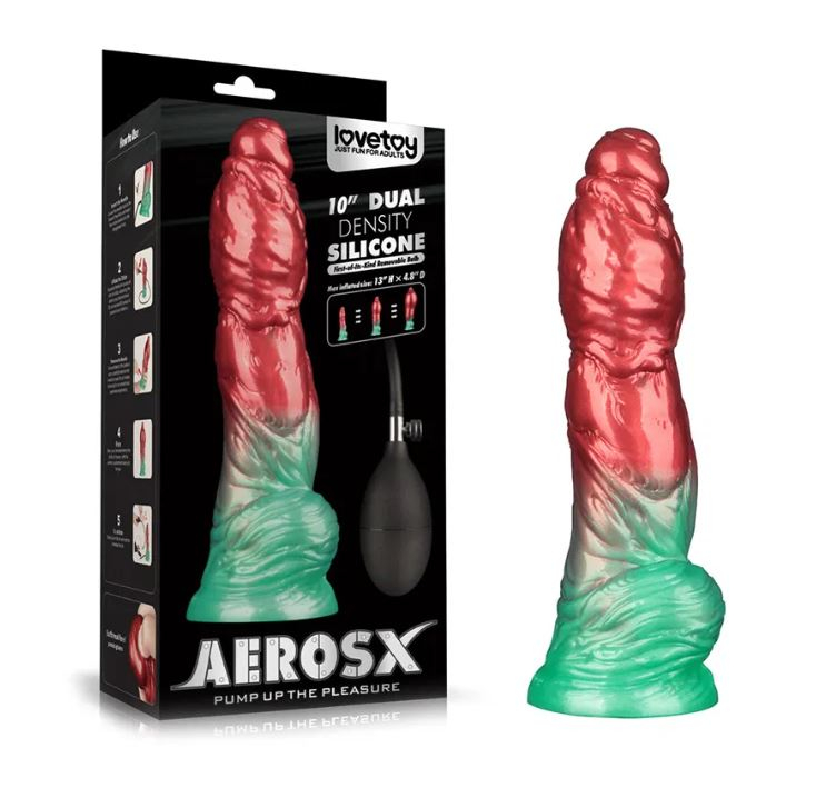 Godemiché gonflable double densité en silicone "AEROSX 10-Inch" rouge-vert.