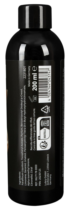 Magoon Love Fantasy erotic massage oil is enriched with jojoba oil which pampers your skin and leaves it soft to the touch. This very economical massage oil is made on the basis of paraffin oil and is therefore water-soluble and washable.