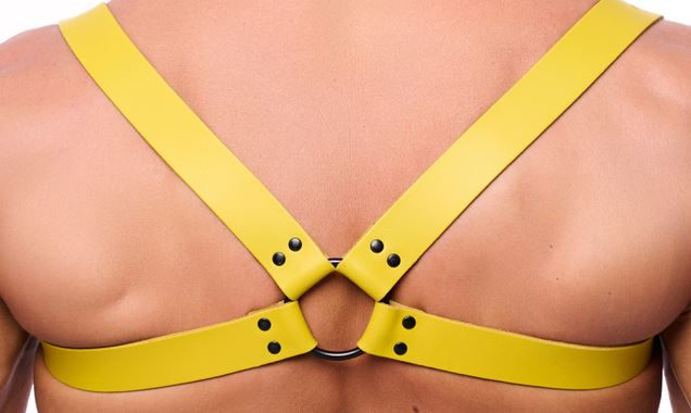 Leder Rückenharness mit Schulterriemen gelb L-XL von The RED. Dieser starke Rindsleder-Rückenharness ist in verschiedenen, attraktiven Farben erhältlich.
